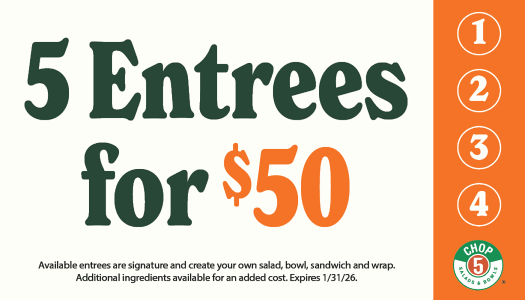 CHOP5 Salads & Bowls is all about real. Real ingredients. Real food. And Real people helping us connect to our guests and each other. A career with us isn’t just another food industry job. It’s a chance at real growth and opportunities in a fun, engaging culture – we call it the CHOP5 family.