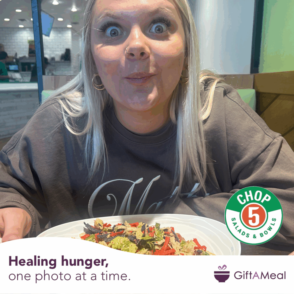 Take photos on the free GiftAMeal app and we’ll donate to the Mid-Ohio Foodbank whenever you eat at one of our restaurants. Share with friends and watch your impact grow.